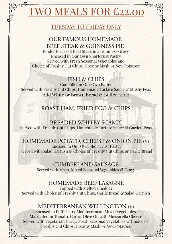 Catch up with friends and family and enjoy a Two meals for £22.